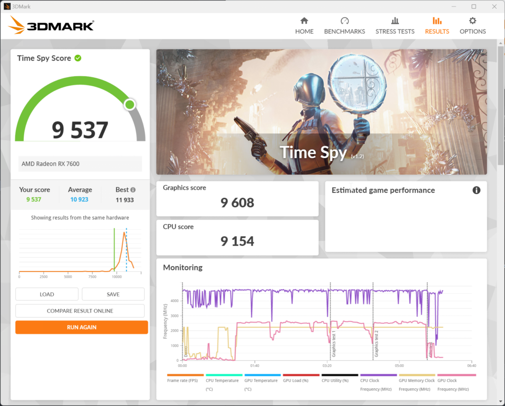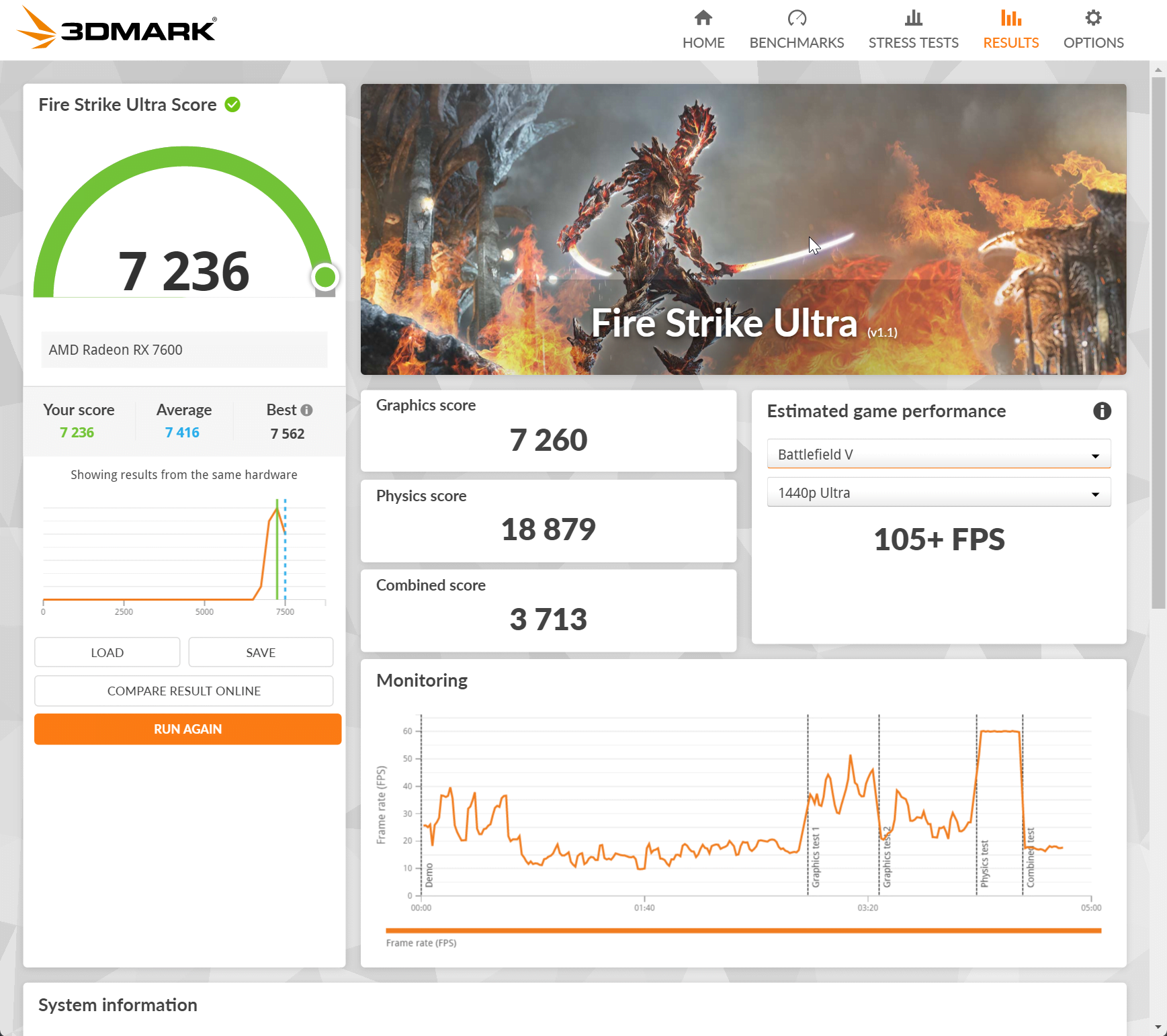 These results show that the RX 7600 OC performs well for its class, though it falls behind the more powerful Arc A770 and RTX 4060 in most tests. The card shows particular strength in the Fire Strike tests, which are more representative of traditional rasterization performance.The lower scores in Port Royal and Speed Way are expected, as these tests focus heavily on ray tracing performance, an area where AMD’s RDNA 3 architecture, while improved, still lags behind Nvidia’s offerings.