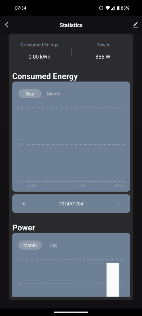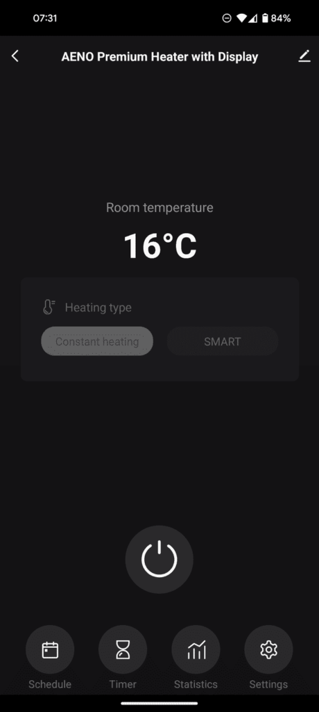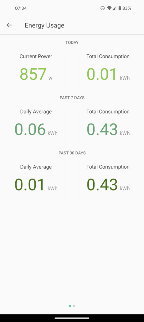 One handy feature, especially for a heater, is the built-in power monitoring. You can view the current power usage as well as historical data or the consumed energy.