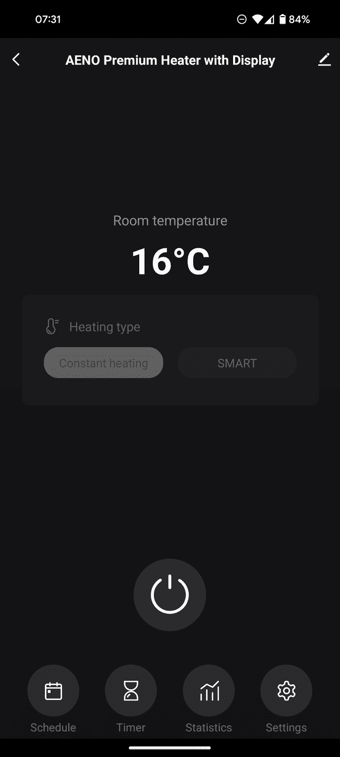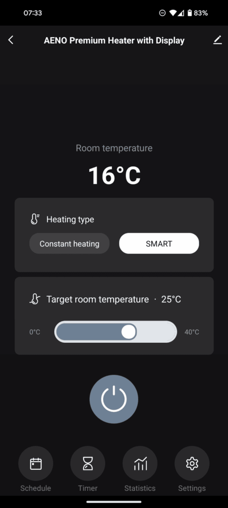 I reset the heater and then added it to Smart Life; once it was added, the main interface for the heater control was identical to the Aeno app.