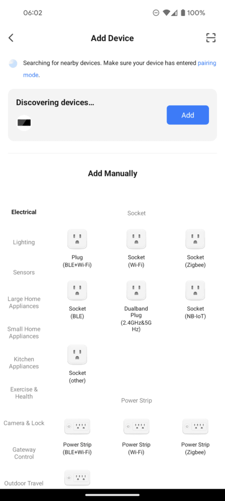 Smart Life has a huge range of supported devices. I already had a smart plug socket within my account, but you can also add things like cameras, lights, and various home and smart home appliances.