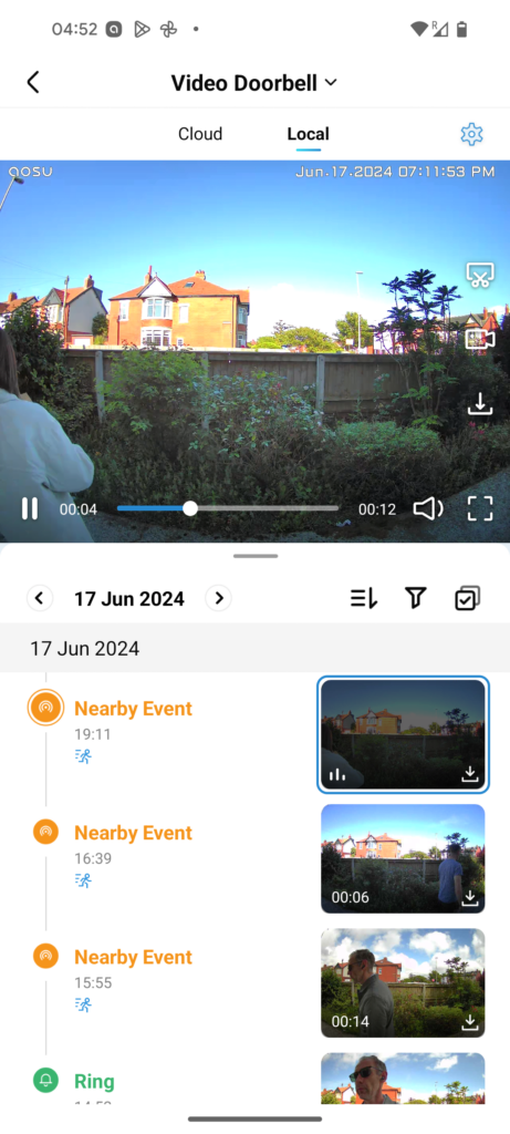 The video has a 4:3 aspect ratio and a resolution of 2560×1920. It claims to have a 166-degree field of view with head-to-toe coverage. That isn’t the case from my experience, the vertical field of view is nowhere near as good as Arlo or the dual camera design of the Video Doorbell E340, but I found that the coverage was still good enough for my needs.