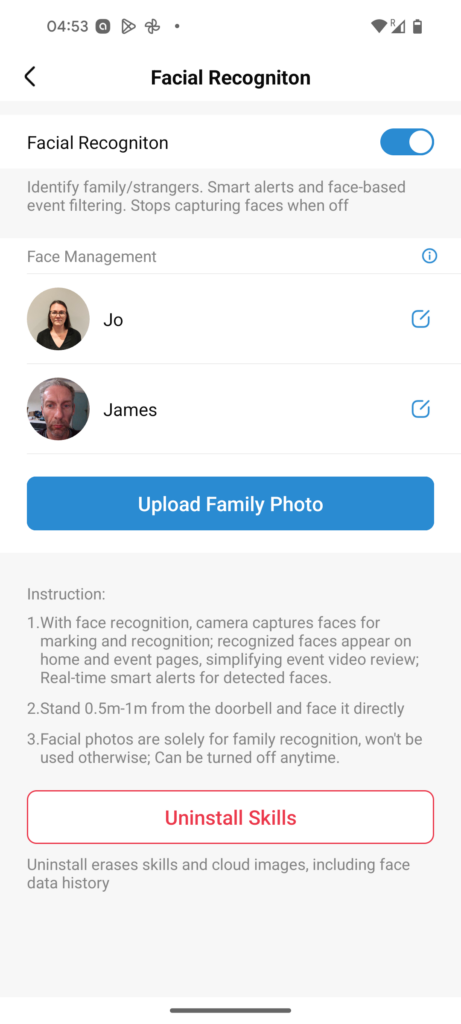 The Face AI is good, but not as good as the Eufy cameras that utilise the HomeBase 3. The Eufy cameras allow you to select strangers’ faces and add them to the recognition, and it will also ask to confirm similar faces to improve accuracy.
