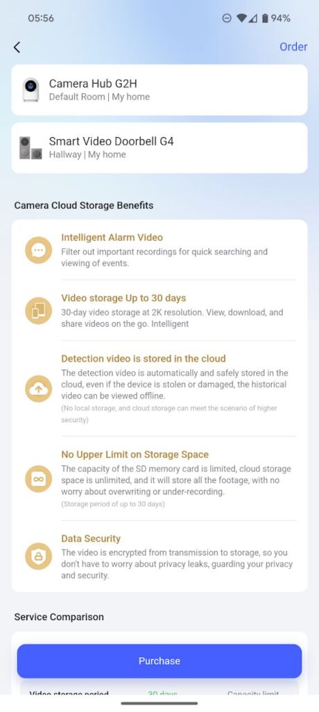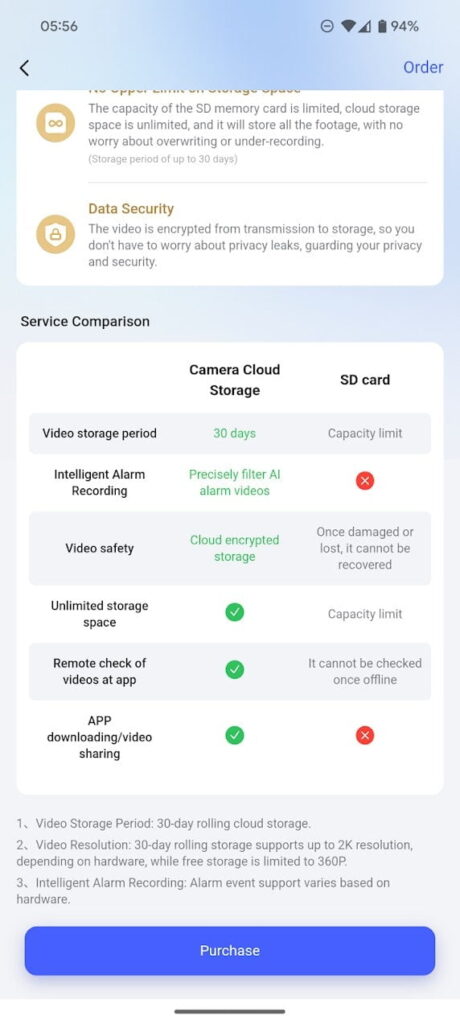 30-day video storage at 2K resolution. View, download, and share videos on the go. Intelligent - Detection video is stored in the cloud