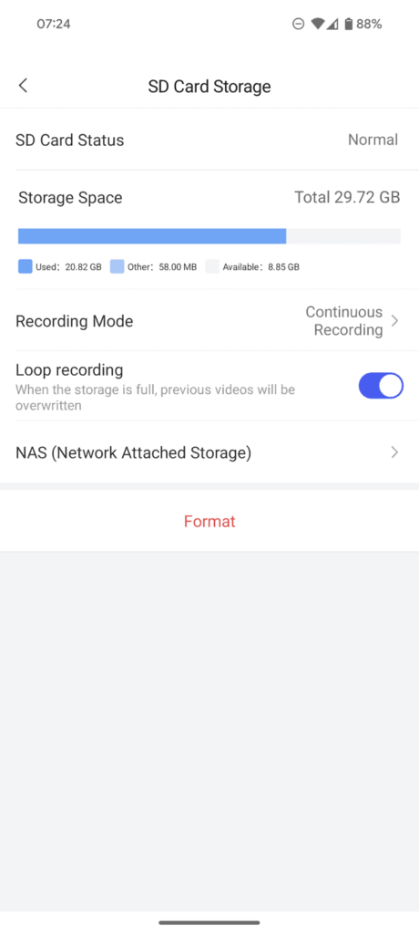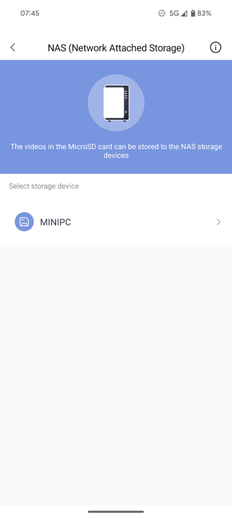 Alternatively, you can record to a NAS. This requires a Samba share (SMB) which is fine but it would be good if they had an option for RTSP/ONVIF, so you can use it with a proper network video recorder.