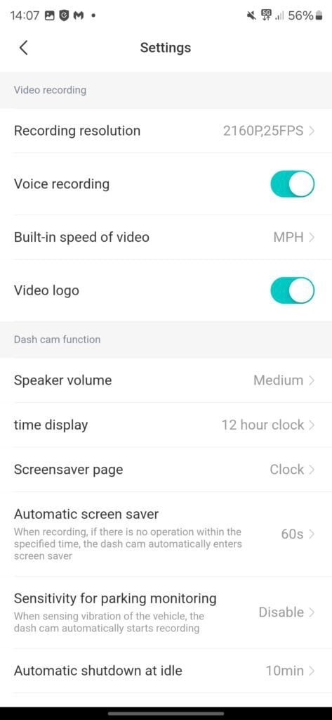 While the app provides comprehensive control over the dash cam, it would be beneficial to have more detailed explanations of some settings within the app itself.