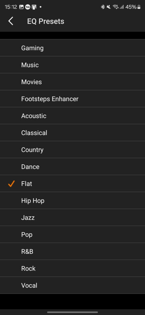 Within the EQ settings, you have a wide range of options, including plenty of presets for easy adjustment of the sound.