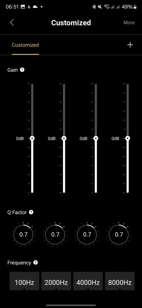 The EQ has a few presets which allow you to customise the sound to your liking quite easily, or for advanced users, you can set up a custom profile.