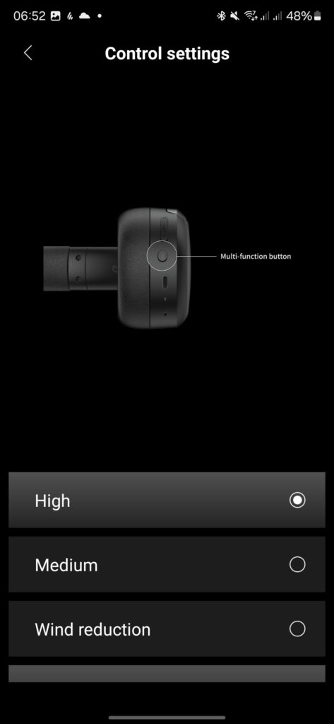 The app also provides control over the ANC modes. Users can switch between different levels of noise cancellation, including a transparency mode that allows ambient sound to pass through. This feature is particularly useful in situations where awareness of surroundings is necessary, such as when walking in urban environments.