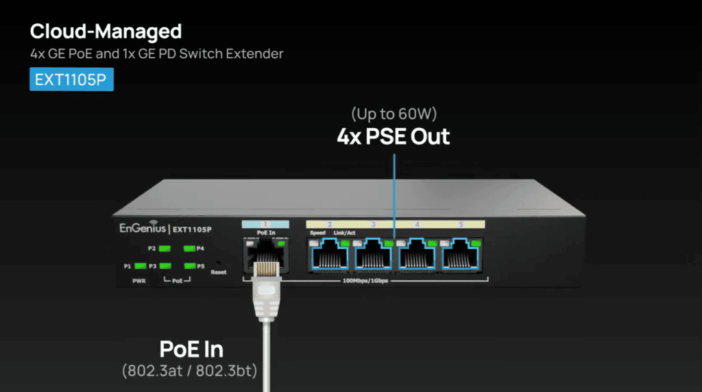 All the EnGenius Cloud access points can be powered by this switch extender.