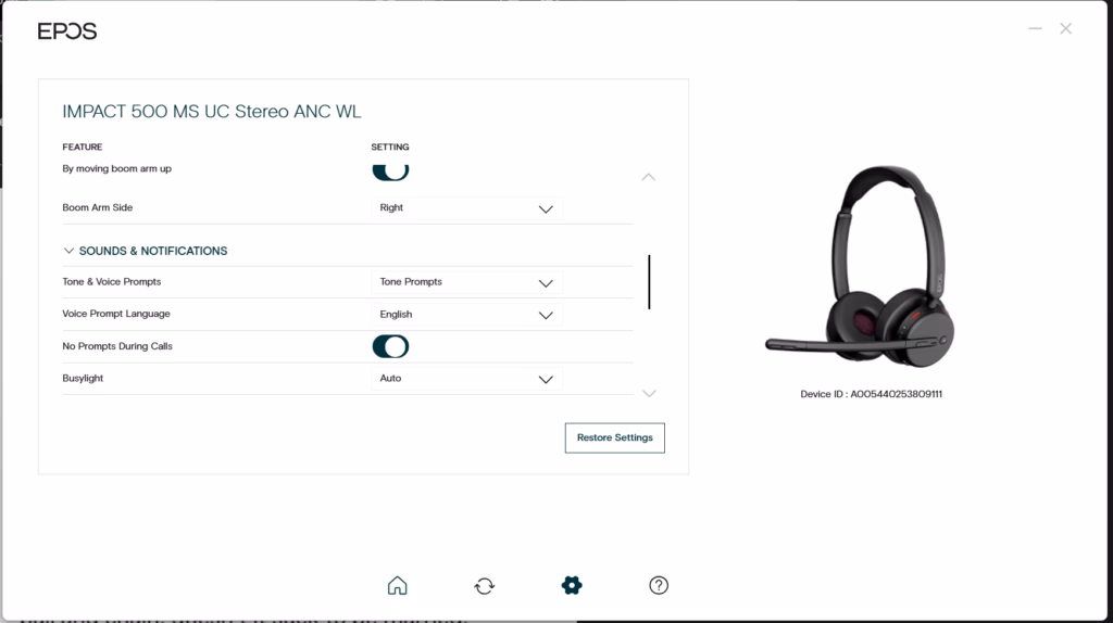 The EPOS app is very basic, but it allows you to upgrade the firmware on the headset and tweak a few settings not on the headset itself.