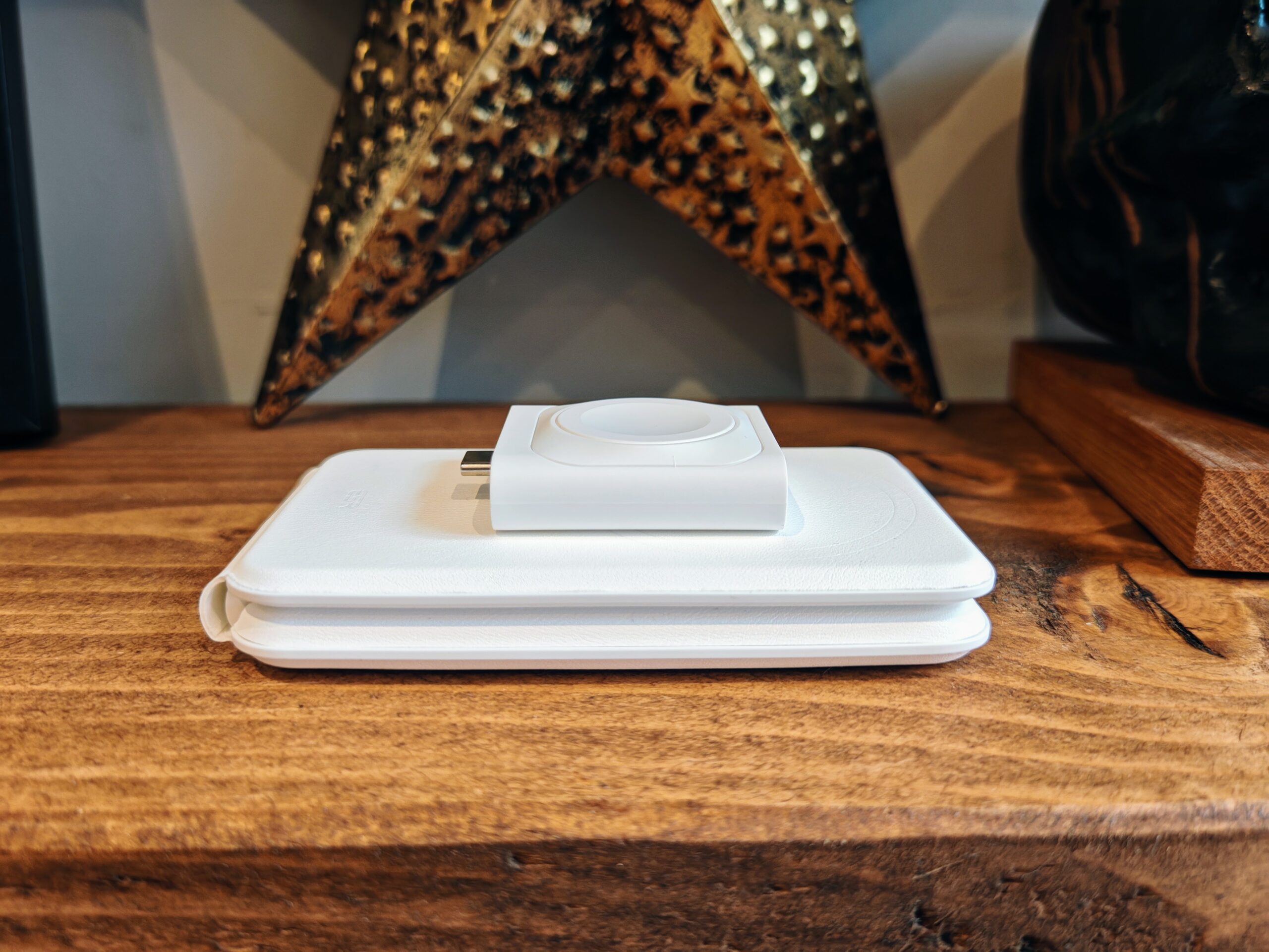 During my testing, I tested it with my partner’s iPhone and Apple Watch, but I also used it with my Samsung Galaxy S24 Ultra, which has a Ringke Fusion MagSafe Magnetic Case that allows me to attach it to Magsafe and Qi2 chargers like this.