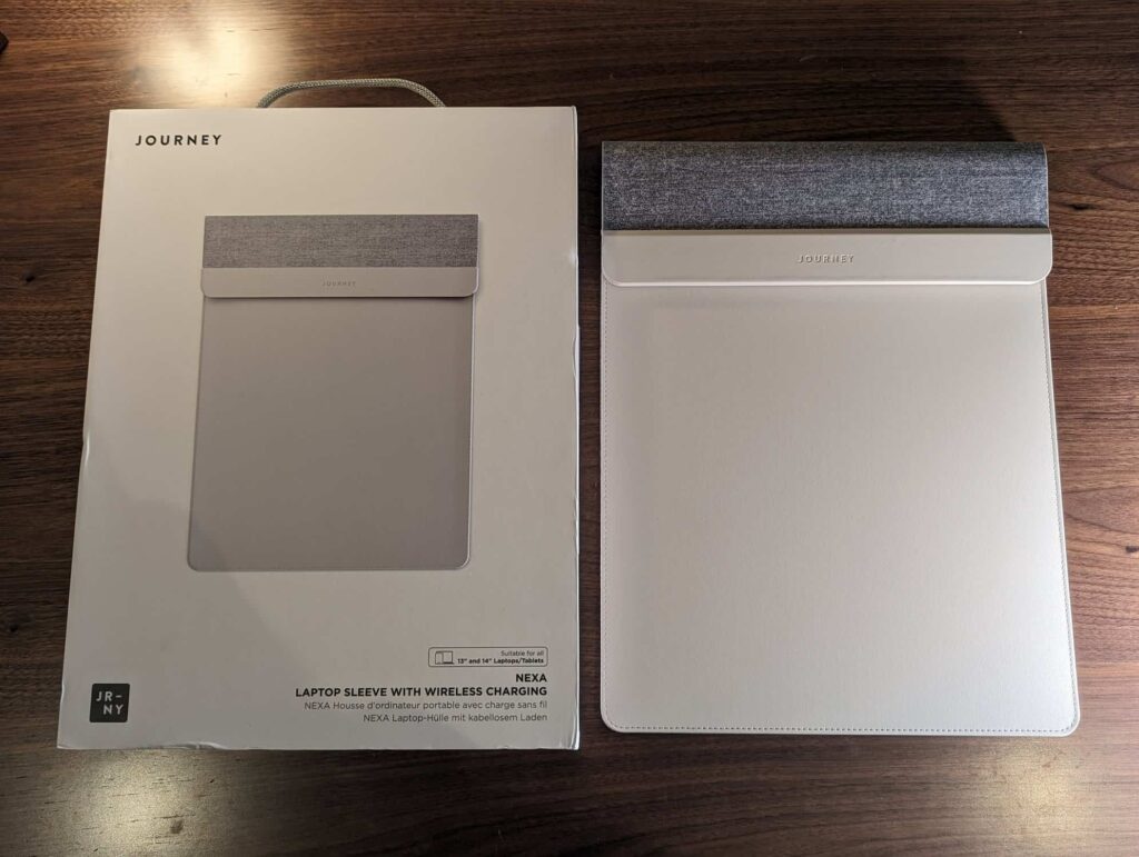On Amazon, HYZUO Laptop Sleeve is vegan leather with a design not dissimilar to the Journey Nexa, but lacking wireless charging. This is available for £20.