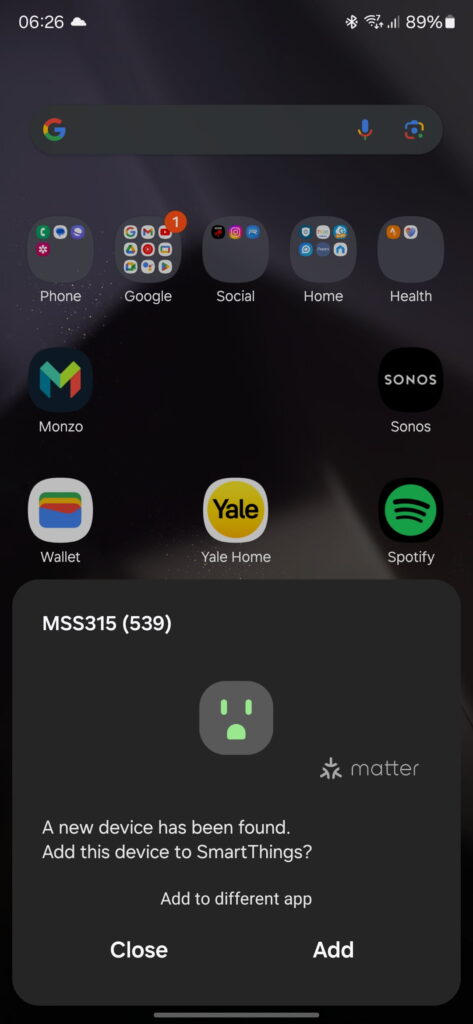 When you select to add the smart plug, it will ask if you have added it to another ecosystem, such as SmartThings. If you select no, you can add it directly to Meross, and I found this less problematic than trying to add it to SmartThings or Home Assistant. However, with it added directly to Meross, there appears to be no way to expose it to other Matter-enabled ecosystems.