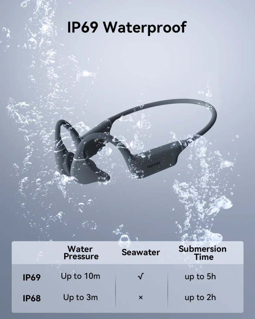 - IP69 Waterproofing: With an IP69 rating, these headphones offer top-level water resistance. The combination of nano waterproof coating and ultrasonic welding provides protection that exceeds industry standards, making them suitable for swimming and diving.