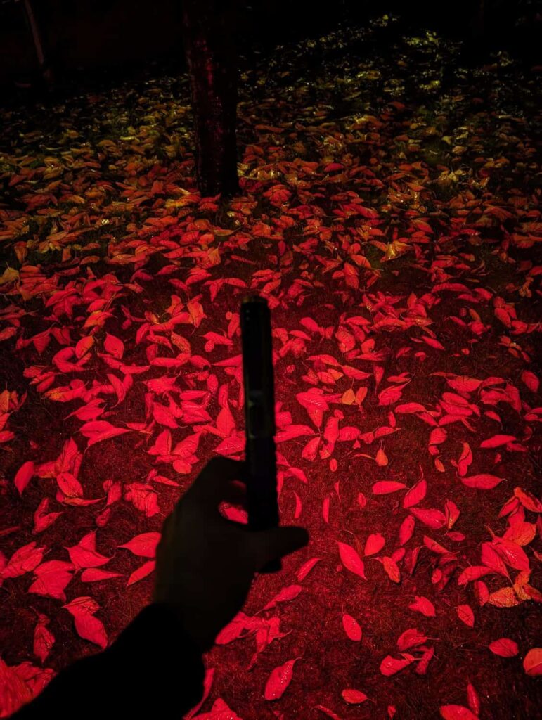 - Red High (40 lumens): 8 hours / 7 meters