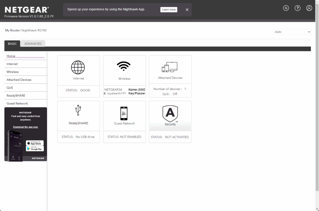 Similarly, the overall router features are basically identical to other Nighthawk routers. The mobile app has very simplified access to settings, with you needing to use a browser to manage the full features.