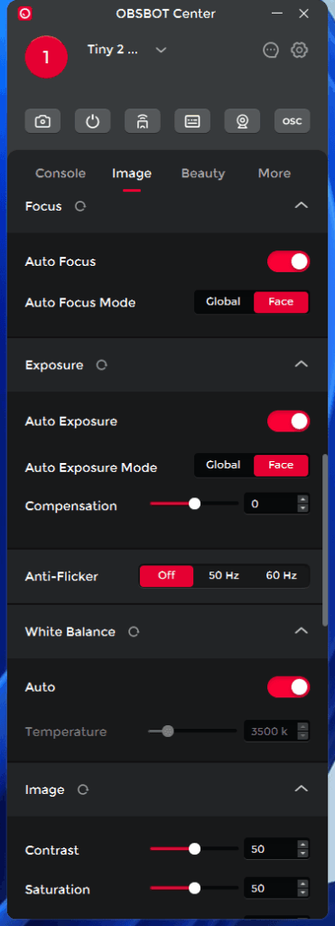In terms of features within the Obsbot Center, both cameras appear to be identical.