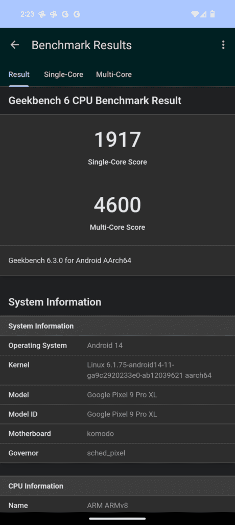 - Pixel 9 Pro XL: 1917 / 4600