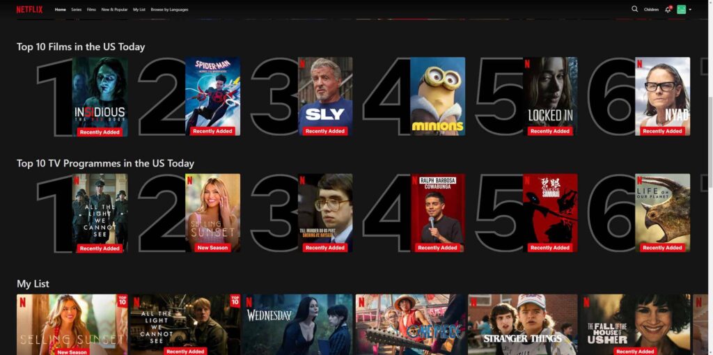 Netflix worked without any problems, clearly indicating I was on the US service with sections for Top 10 Films in the US Today.