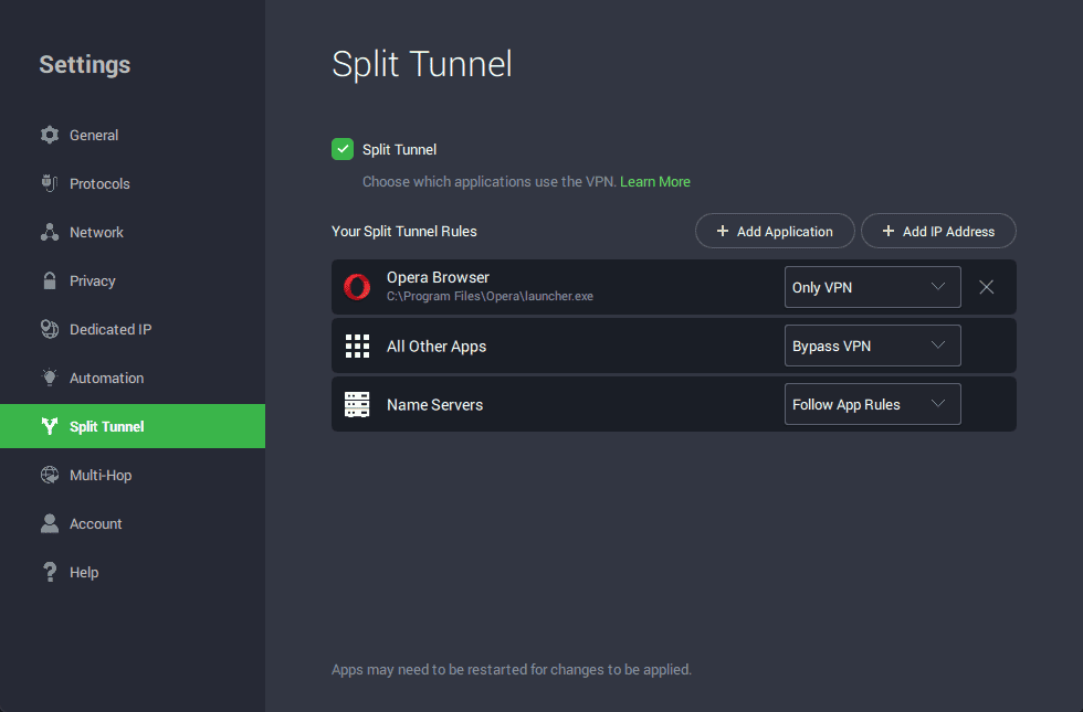 Split Tunnelling is an indispensable feature that grants users the power to choose which applications send their data through the VPN tunnel and which can connect to the internet directly. This level of control is invaluable for maintaining access to local network devices while still enjoying the security benefits of VPN for selected applications.