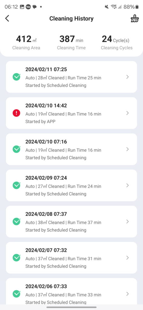 - Cleaning history and statistics