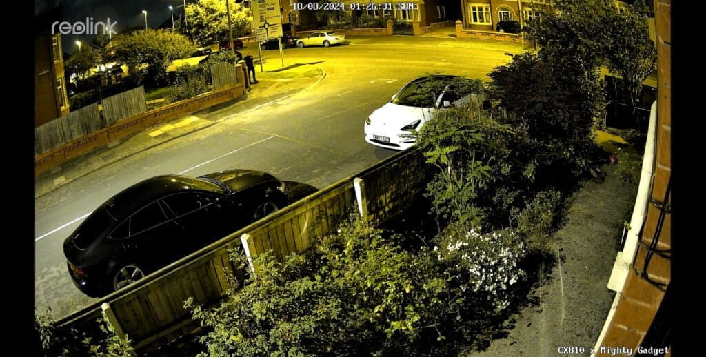 In my situation, I don’t really need the spotlight as there are bright street lights everywhere, but with the below YouTube video, you can see what appears to be a drunken young man walking home, which then activates the lights. The lights do cause some glare from the street signs, which is not a problem in this situation but if you are hoping to capture number plates at night then you will want to leave the spotlights off.