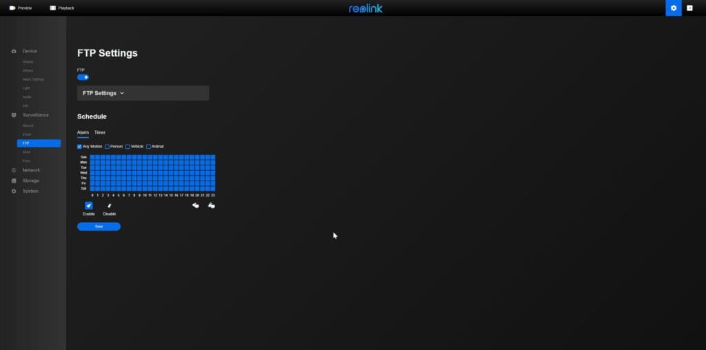 One of the main selling points for Reolink is the executive recording options. The camera supports microSD for affordable local storage, you can also compliment this with FTP uploads.