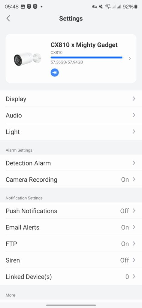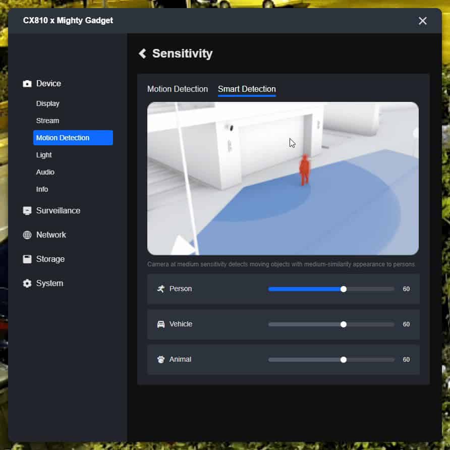 The CX810’s motion detection capabilities are robust and highly customisable. The camera uses advanced AI to distinguish between people, vehicles, and animals, significantly reducing false alarms caused by factors like moving branches or changes in lighting.