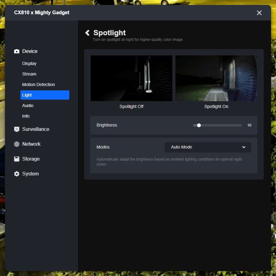 Some users have suggested that the CX810’s low-light performance is not as good as that of the 4MP CX410, but I have not used that camera, so I can’t confirm. I have personally been very happy with the CX810’s low-light performance, though there is a lot of street lighting where I live. If you live somewhere rural with very low light, then you may want to consider the CX410 or rely on spotlights.