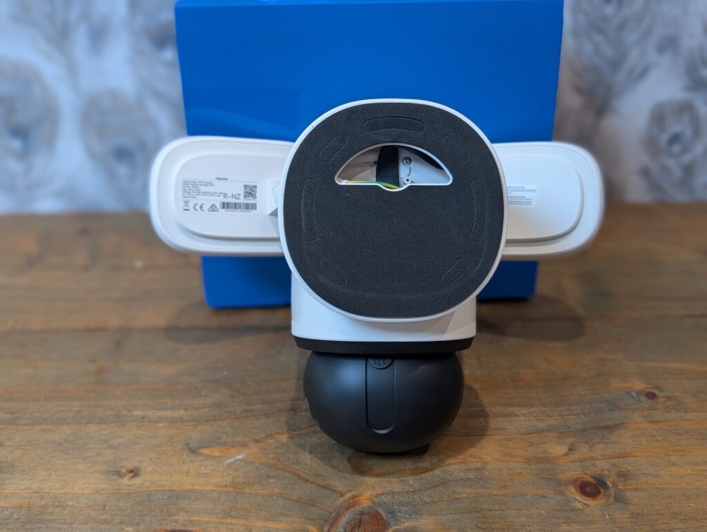 The physical installation process is straightforward if you already have outdoor wiring in place. I used the unterminated power lead from my previous Elite Floodlight WiFi setup. The mounting plate has a cutout for running cables, plus a small hole with a rubber plug for alternative cable routing.
