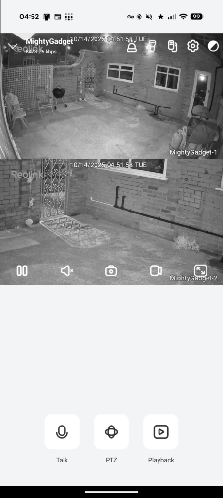 Night performance is acceptable but not exceptional. Without the floodlights, the camera records in black and white using infrared LEDs with a range of around 30 metres. With the floodlights enabled, you get colour footage with even illumination across the frame.