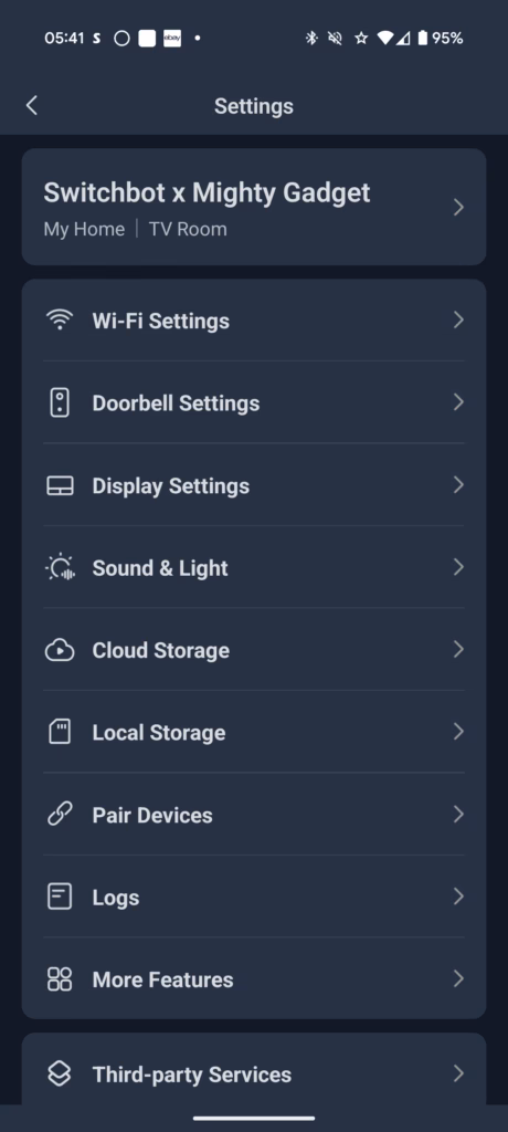 The SwitchBot app provides a good level of control over the video doorbell’s functions. Within the device settings, you can manage a range of options to tailor its performance to your needs.