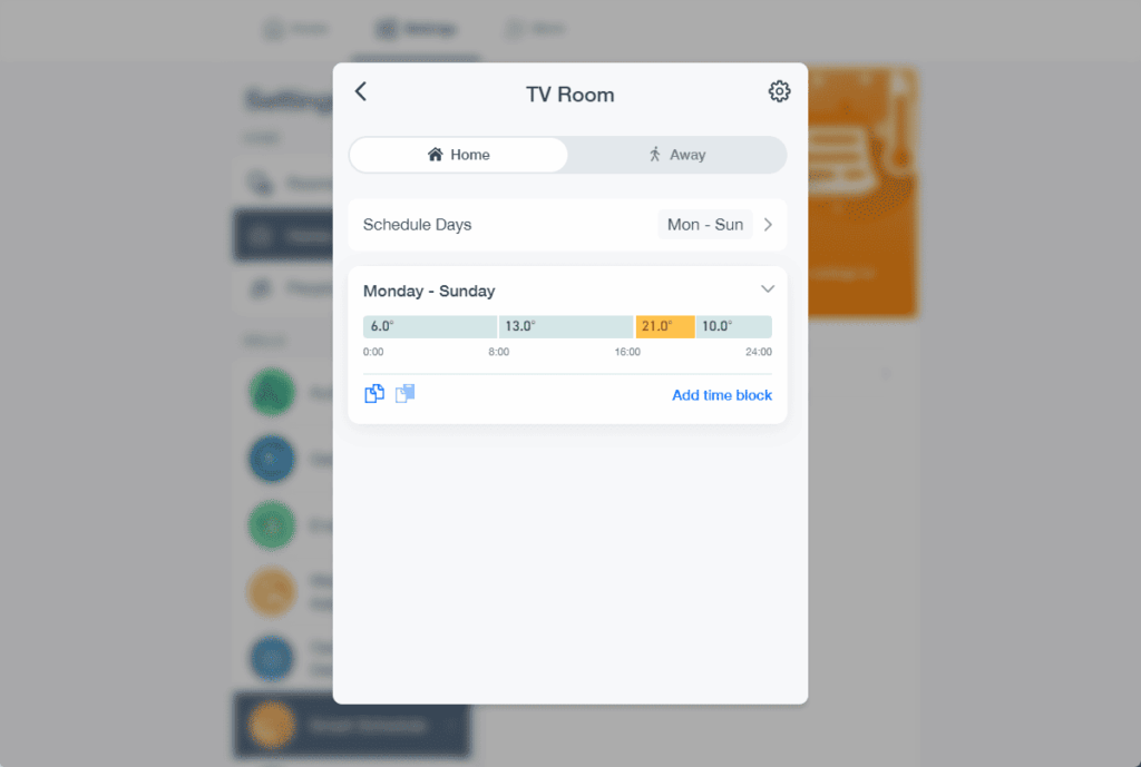 The Smart Radiator Thermostats allow you to set schedules and target temperatures for each room. For example, I have the bedroom scheduled to heat up in the morning and evening, while the living room maintains a constant comfortable temperature during the day.