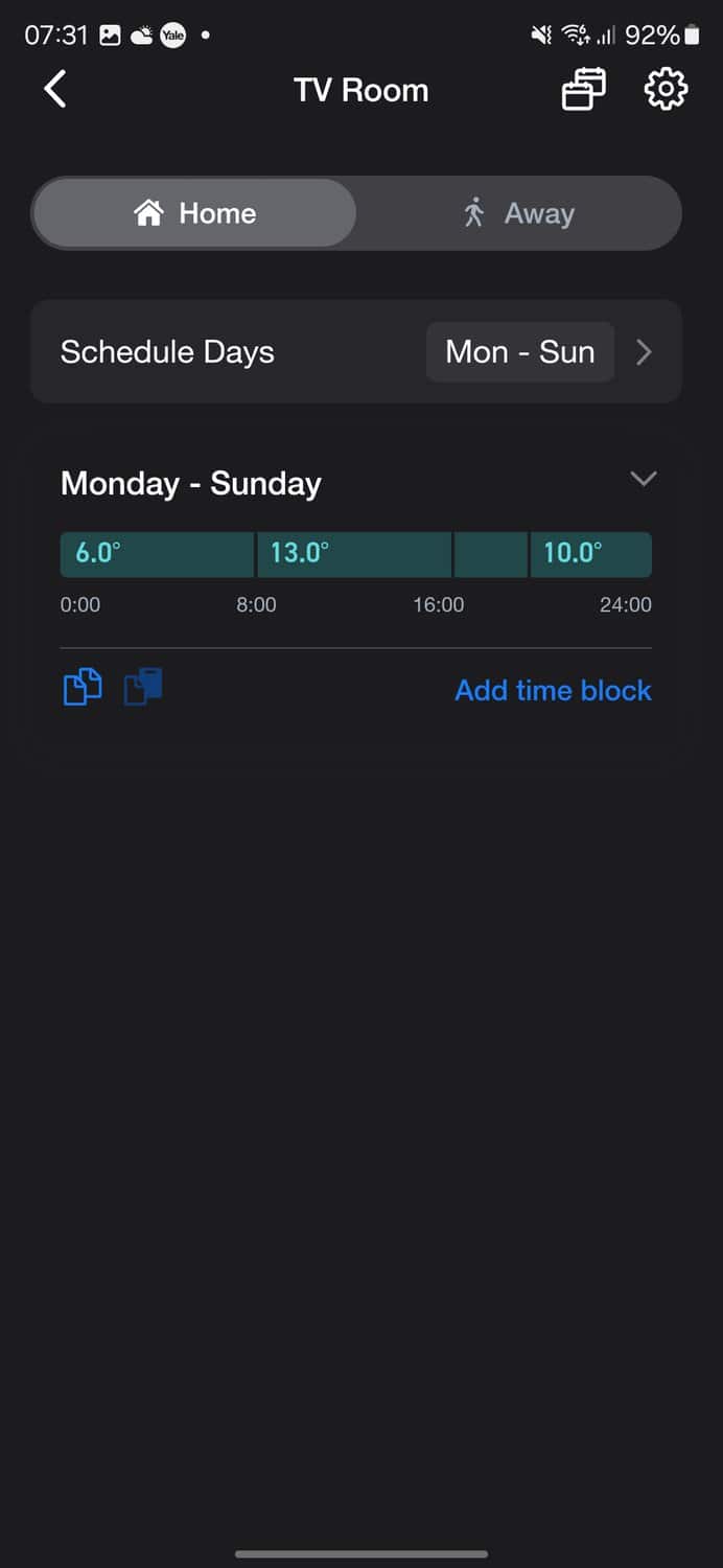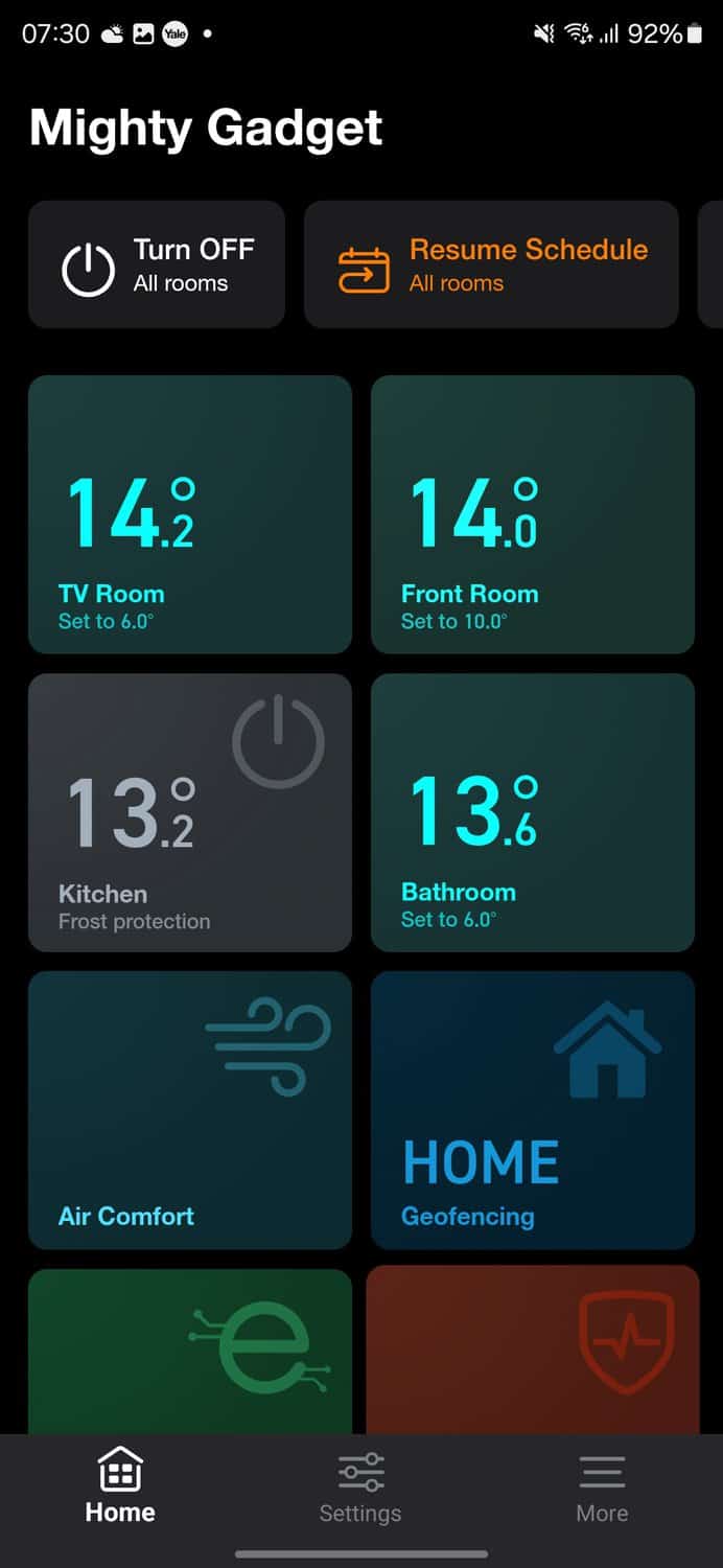 Tapping into each room gives you more granular control, with the ability to set different temperature schedules and modes for each room. This is handy for configuring different temperatures at different times, like boosting the temperature for a short while or having lower temperatures at night.