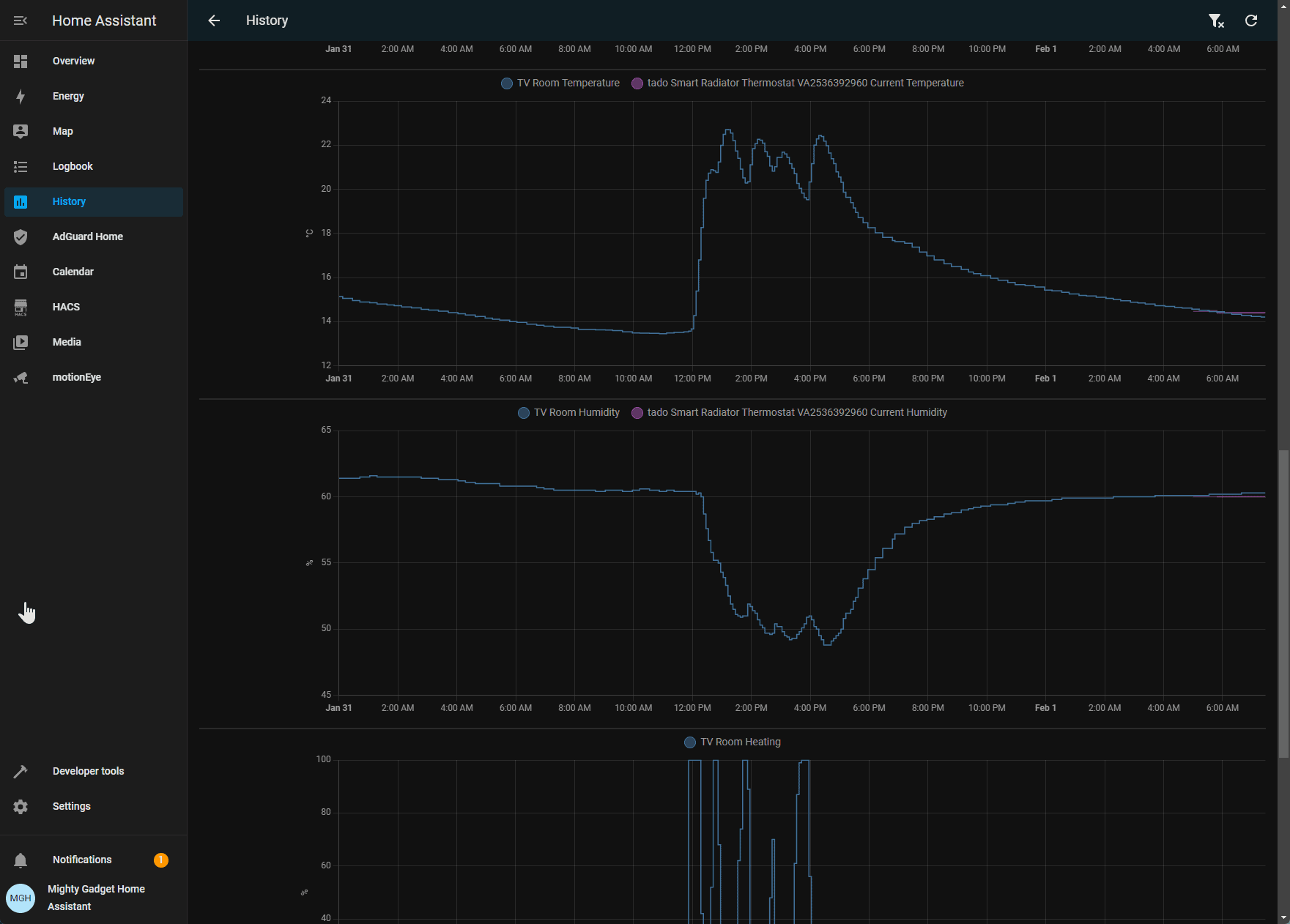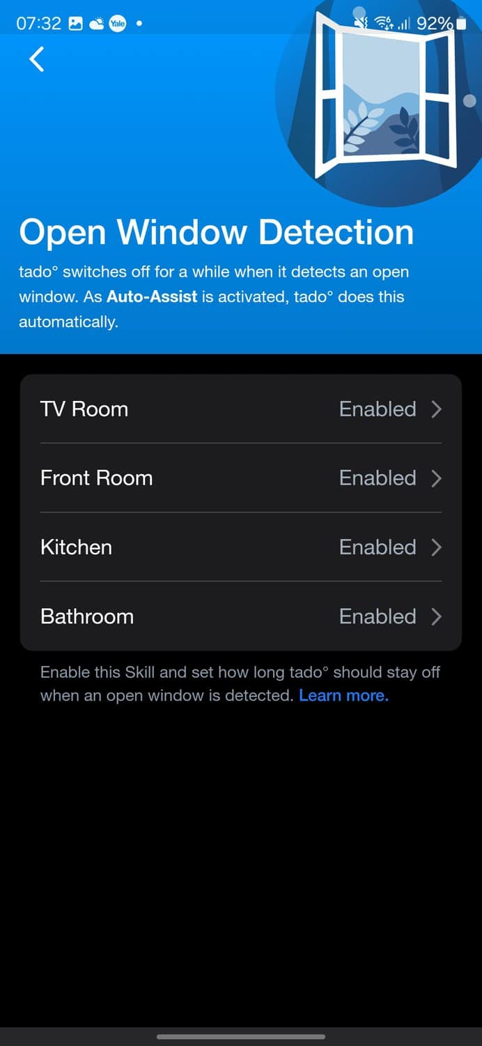 An interesting feature built into the smart thermostat itself is open window detection using the internal temperature and humidity sensors.