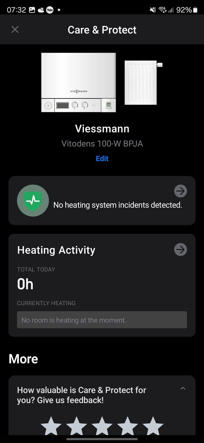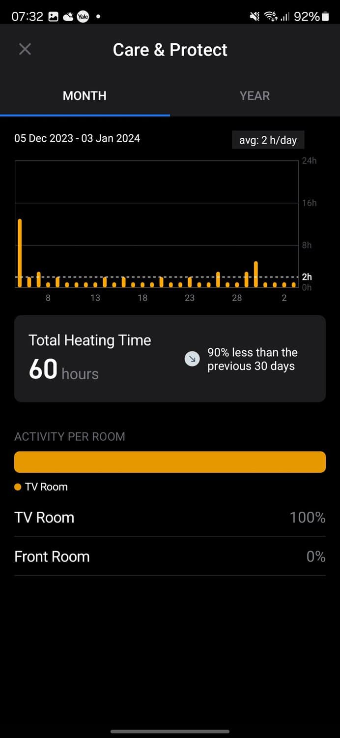 The Care & Protect feature is another focuses on the health of your heating system, informing you of your usage and helping you to identify issues, should they arise.