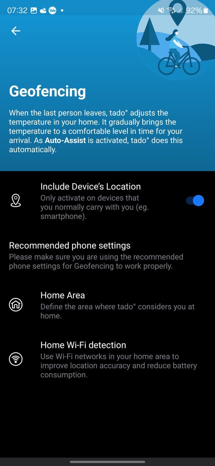 With auto assist, when the last person leaves, Tado can automatically switch to an Away mode with reduced heating. And when someone comes back within the geo-fence radius, it will resume the Home mode heating ready for their return.