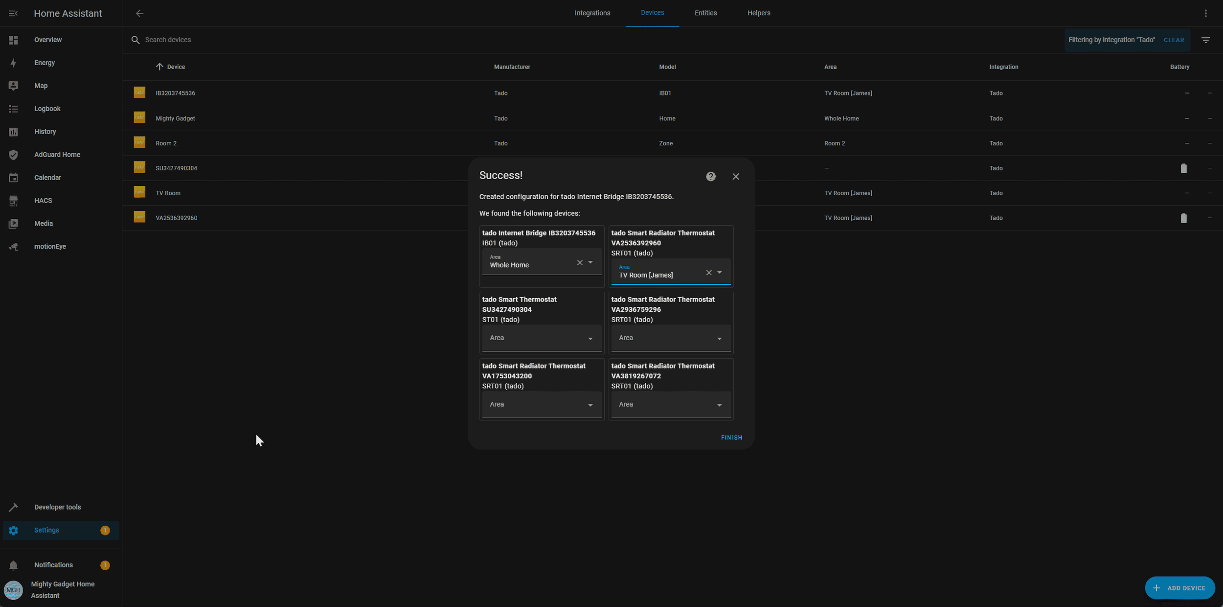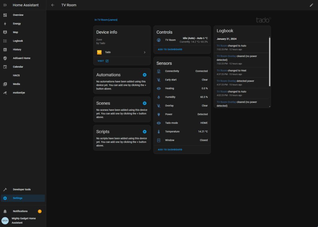 This was one of the main reasons why I wanted to move to Tado as I hope to eventually control all my smart home devices within Home Assistant.