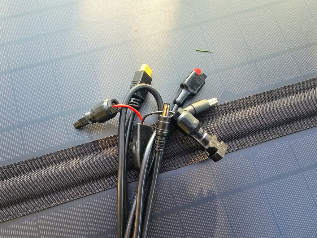 On the underside of the solar panel is a small box with output ports, which have two USB-A ports and a USB-C port. It then has a DC5521 port and an included cable with XT60/DC7909/MC4/Anderson connections. This should be adequate to connect to most portable power stations, or you can charge phones and power banks using the USB ports.