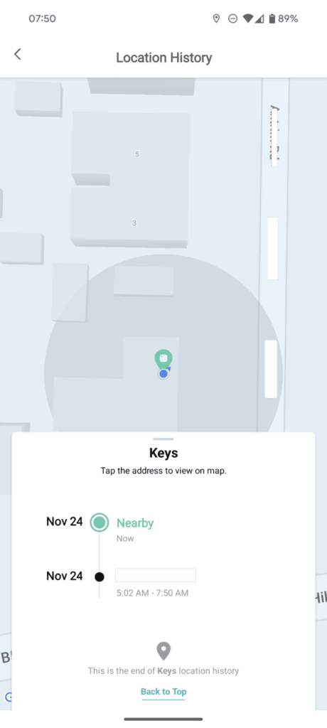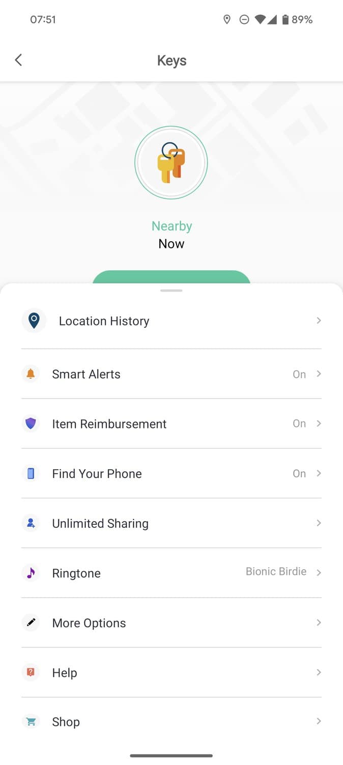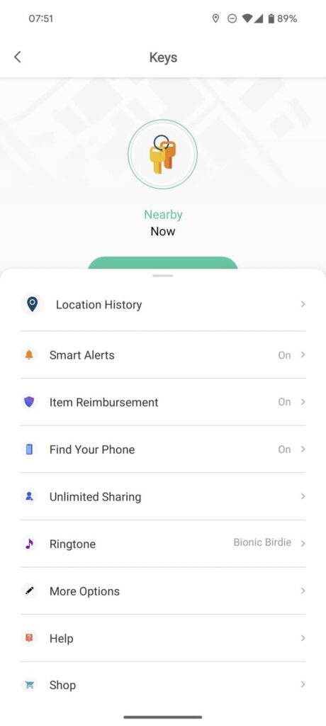 The Tile Pro produces a loud ringtone to help you find keys or bags nearby. You can also view the last known location on a map in the app.