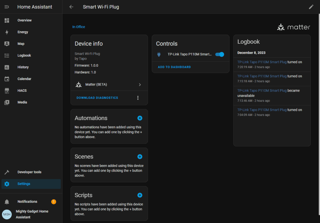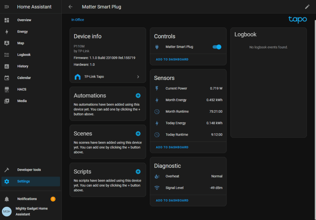 Because the TP-Link Tapo P110M has Matter support, you don’t need to use the Tapo app at all, or you can use Tapo and Matter together.