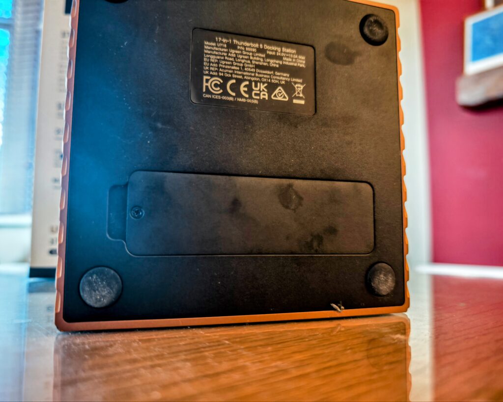 Performance through the Thunderbolt 5 interface will not match what a Gen4 drive achieves on a motherboard’s M.2 slot, but it substantially outpaces any USB 3.2 Gen 2 external drive. For video editing scratch disks, large file transfers, or Time Machine backups, it is a genuinely useful addition. It is also worth noting that the CalDigit TS5 Plus – the closest premium competitor – does not offer an M.2 slot at all. If built-in NVMe storage matters to you, the Ugreen is one of very few TB5 docks that provides it.