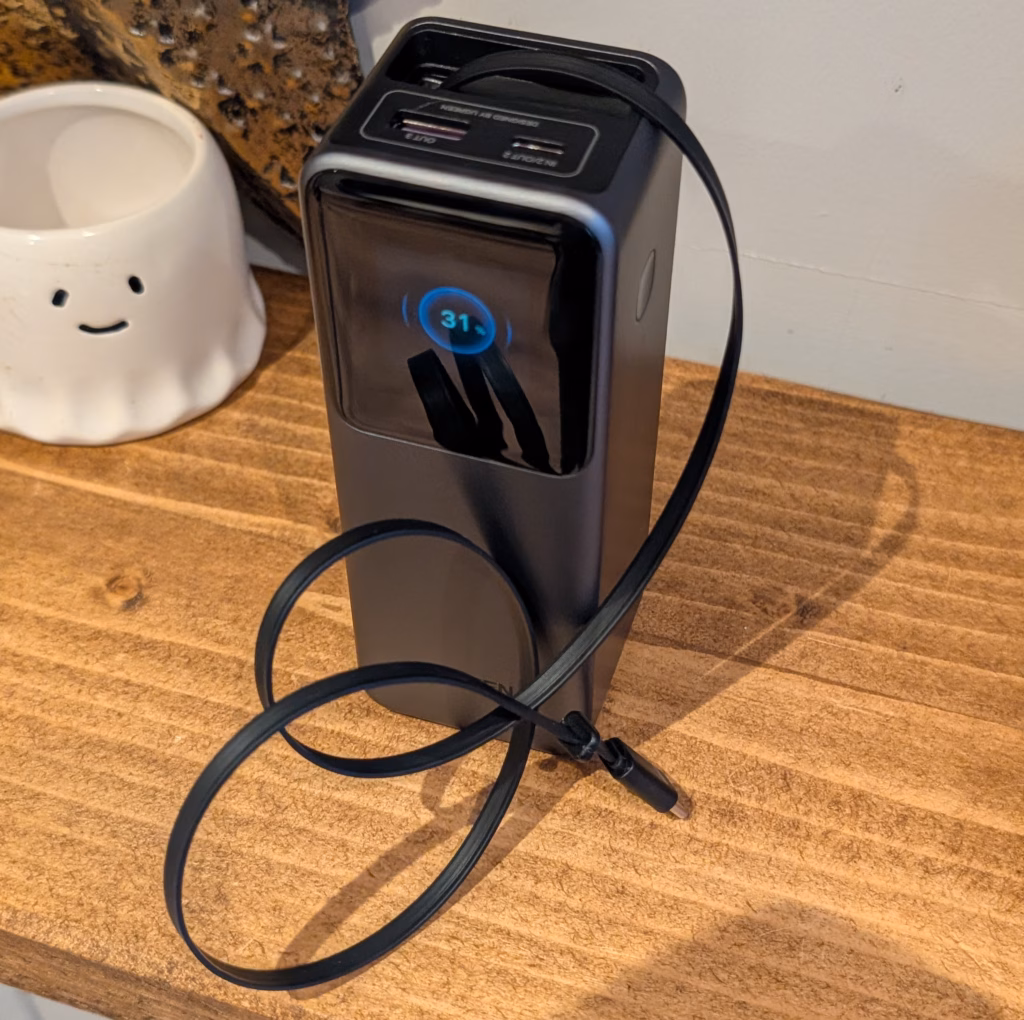 Charging the power bank itself takes approximately 2 hours when using a 100W charger, though this requires a separate cable as the retractable cable cannot be used for input. This limitation feels like a missed opportunity, particularly given the emphasis on reducing cable clutter.