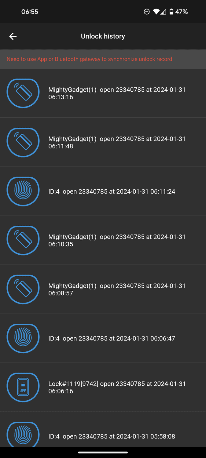 Similar to the last review, I am not keen on the app at all. But it is functional, the Bluetooth unlock method works fine, and once you have set up your users, you shouldn’t really need to use the app again.