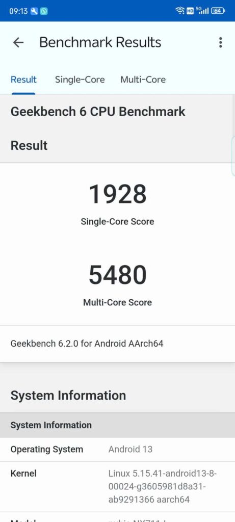 Moving on to Geekbench 6, the phone achieves about the same as other phones with 1928/5480.